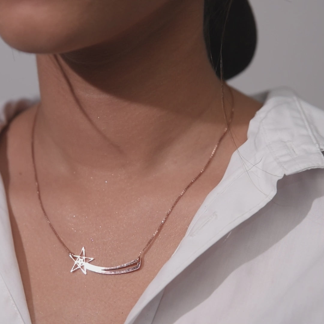 Embrace the magic of the night sky with the Falling Star Pendant, a stunning piece of jewelry that symbolizes wishes, dreams, and the beauty of the cosmos. This elegantly designed pendant features a delicate falling star, perfect for those who believe in the power of dreams and aspirations. Crafted with high-quality materials, it makes a meaningful addition to any jewelry collection or a thoughtful gift for someone special. Whether worn on its own or layered with other pieces, the Falling Star Pendant adds a touch of celestial charm to any outfit.